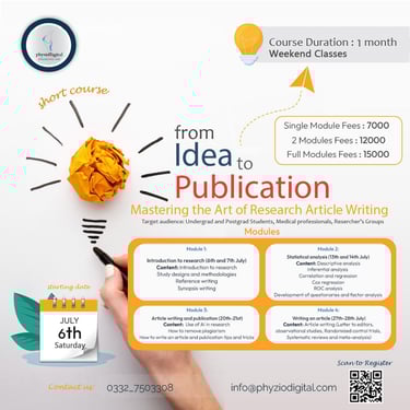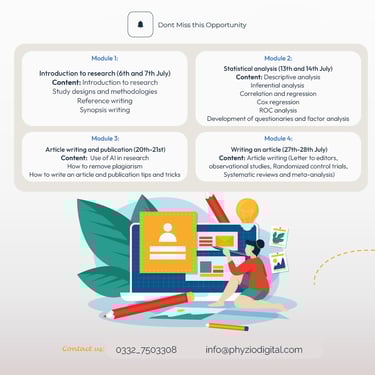 Content: Article writing (Letter to editors, observational studies, Randomized control trials, Systematic reviews and meta-analysis)